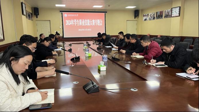 3月18日,我校在实训中心会议室召开2024年学生职业技能大赛专题会,各学院相关负责人参加会议,会议由王秋锋处长主持。